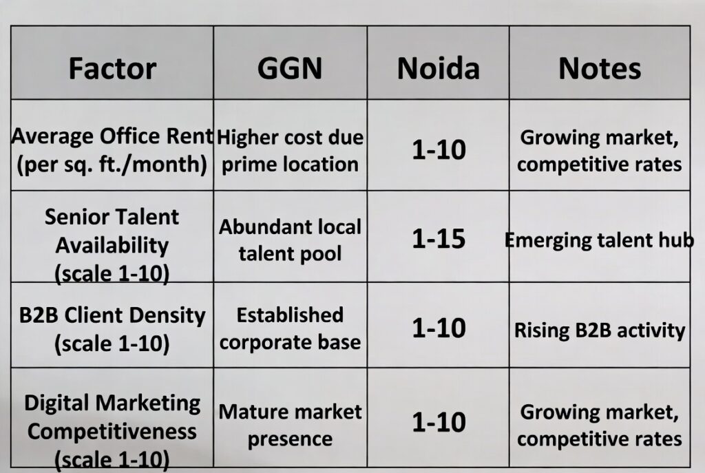 - If your core model relies on high-cost, specialized B2B sales and high-end talent, Gurgaon is the strategic choice, even with higher operational costs.